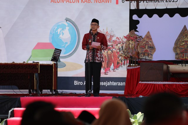 Bupati Ngawi Ir. H. Budi Sulistyono dalam sambutannya menyampaikan ucapan terima kasih kepada seluruh kabupaten yang telah berpartisipasi dalam acara Hari Aksara Indonesia dan berpesan kepada seluruh elemen masyarakat secara bersama – sama untuk mencegah buta aksara dengan sering membaca.