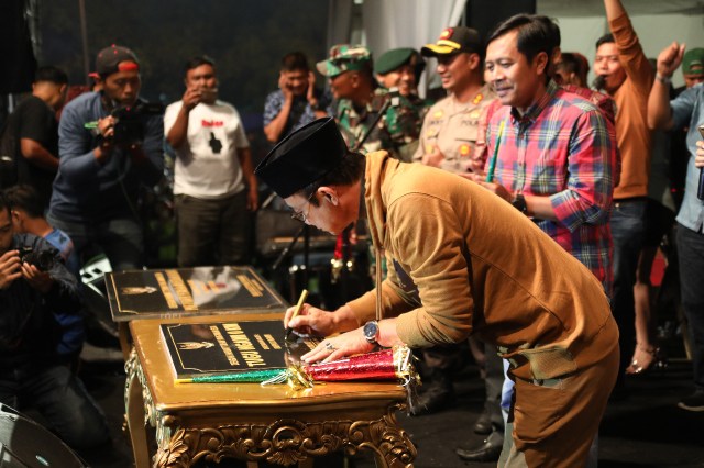Di panggung hiburan malam pergantian tahun ini Bupati Ngawi ir. H. Budi Sulistyono juga membubuhkan 3 tanda tangan prasasti sebagai tanda telah diresmikannya Tugu Ngawi 0 Km, Gedung Perpustakaan Dan Kearsipan, Dan Pos Induk Pemadam Kebakaran.