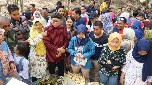Bupati Ngawi Ir. H. Budi Sulistyono berfoto bersama masyarakat dalam acara Pasar Jadoel yang diadakan setiap Ahad Legi